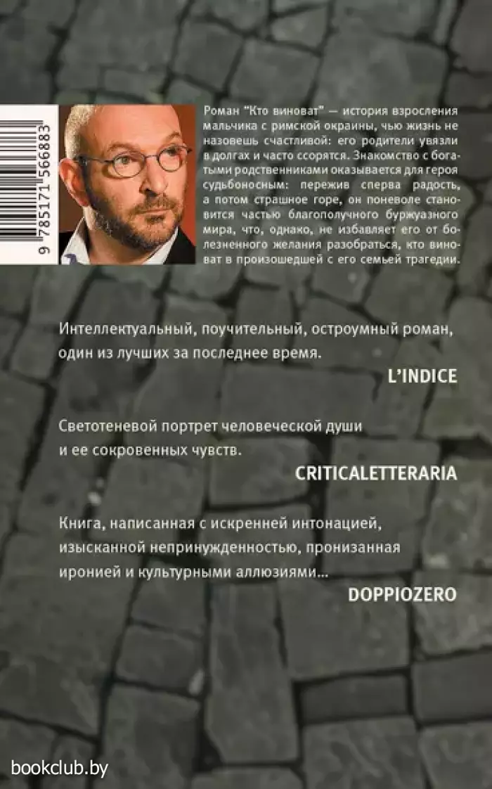 Роман "Кто виноват" – рассказанная от первого лица история взросления главного героя, мальчика, который вместе с родителями живет на окраине Рима. Семья еле сводит концы с концами, ведет замкнутый образ жизни и не общается с родственниками. Если о родне со стороны отца что‑то известно, то прошлое матери покрыто густым туманом. Однако он рассеивается, когда на еврейскую Пасху герой попадает в дом ее богатых родственников. Эта встреча становится важной вехой в судьбе подростка, она приносит с собой перемены: нью-йоркские каникулы, мучительное чувство любви, а следом – страшную трагедию и новую жизнь в буржуазной среде. Престижная частная школа, приятные знакомства, большие возможности тем не менее не избавляют молодого человека от тревожных размышлений.