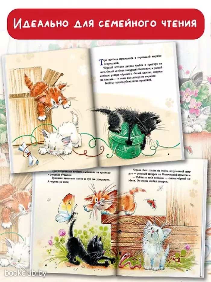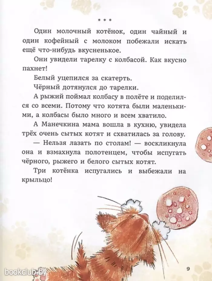 Три шустрых любопытных котёнка отправляются на поиски мамы и приключений! Узнайте вместе с малышами, куда прячутся от грозы цыплята и червяк, кто живёт в реке и летает в саду. Очаровательные непоседы заглянут во все уголки дома и займут прочное место в сердце своей хозяйки Манечки, которая уверена, что друзей не бросают.