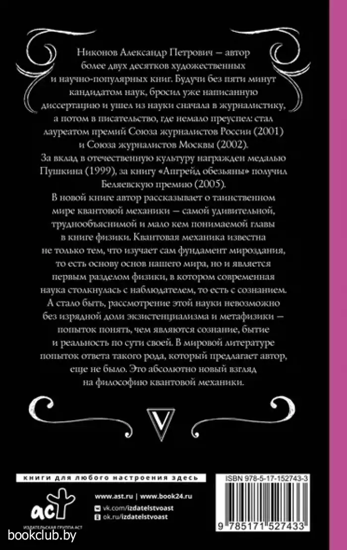 В новой книге автор рассказывает о таинственном мире квантовой механики – самой удивительной, труднообъяснимой и мало кем понимаемой главы в книге физики. Квантовая механика известна не только тем, что изучает сам фундамент мироздания, то есть основу основ нашего мира, но и является первым разделом физики, в котором современная наука столкнулась с наблюдателем, то есть с сознанием. А стало быть, рассмотрение этой науки невозможно без изрядной доли экзистенциализма и метафизики – попыток понять, чем являются сознание, бытие и реальность по сути своей. В мировой литературе попыток ответа такого рода, который предлагает автор, еще не было. Это абсолютно новый взгляд на философию квантовой механики.