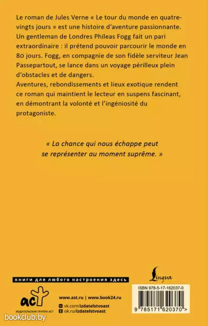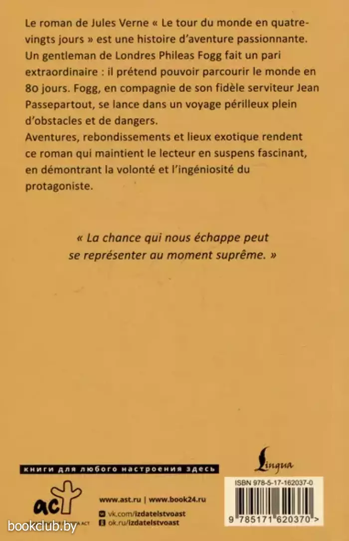 Книга «Le Tour du Monde en 80 Jours (м)» не только принесёт множество приятных эмоций, но и может послужить замечательным подарком для ваших близких. Для вашего удобства при оформлении заказа по телефону назовите код товара: 407909
