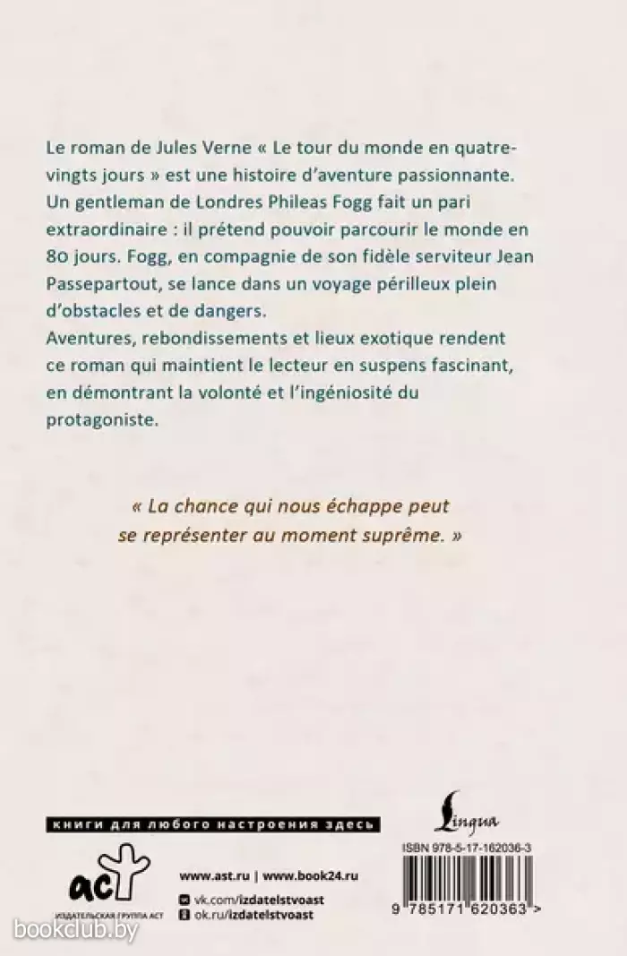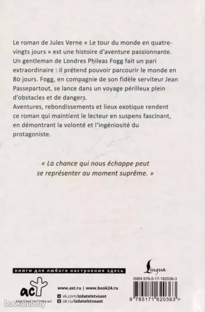 Книга «Le Tour du Monde en 80 Jours (тв)» не только принесёт множество приятных эмоций, но и может послужить замечательным подарком для ваших близких. Для вашего удобства при оформлении заказа по телефону назовите код товара: 407908