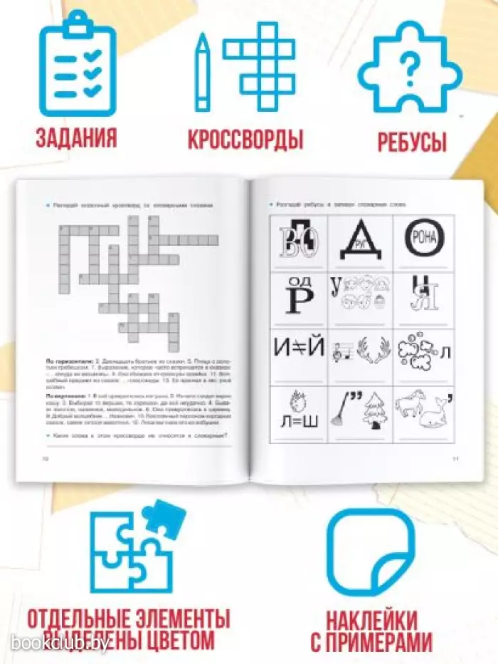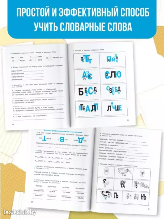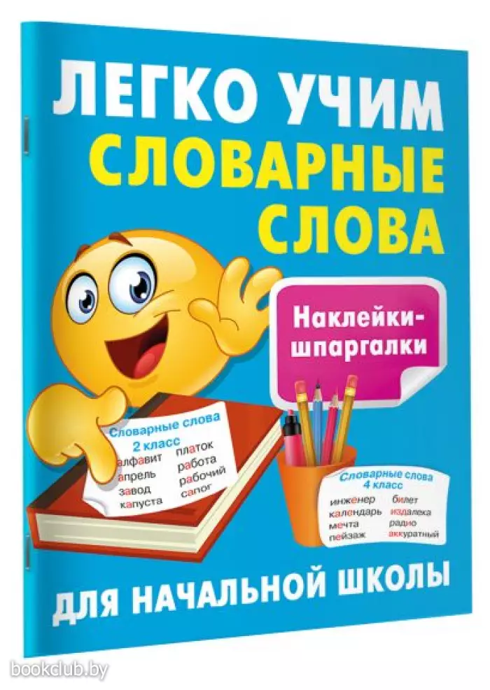 В пособии для учеников 1−4 классов «Легко учим словарные слова» — все самые эффективные способы запоминания словарных слов. Ученик будет составлять из словарных слов предложения, запоминать слова с помощью ассоциаций, разгадывать кроссворды и ребусы со словарными словами. Отдельные элементы текста в пособии выделены цветом — это упрощает запоминание информации и повышает эффективность учебного процесса. Запомнить слова будет ещё легче благодаря цветным наклейкам-шпаргалкам. Их можно наклеить на обложку тетради или учебника — таким образом, подсказки всегда будет перед глазами учащегося.
