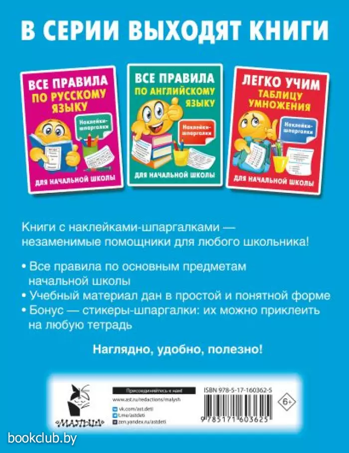 Книги издательства «АСТ» из серии «Наклейки-шпаргалки для начальной школы» - отличное приобретение для вас и ваших близких. Для вашего удобства при оформлении заказа по телефону назовите код товара: 198425