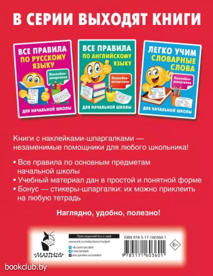 Книги издательства «АСТ» из серии «Наклейки-шпаргалки для начальной школы» - правильный выбор и отличное приобретение. Для вашего удобства при оформлении заказа по телефону назовите код товара: 198426