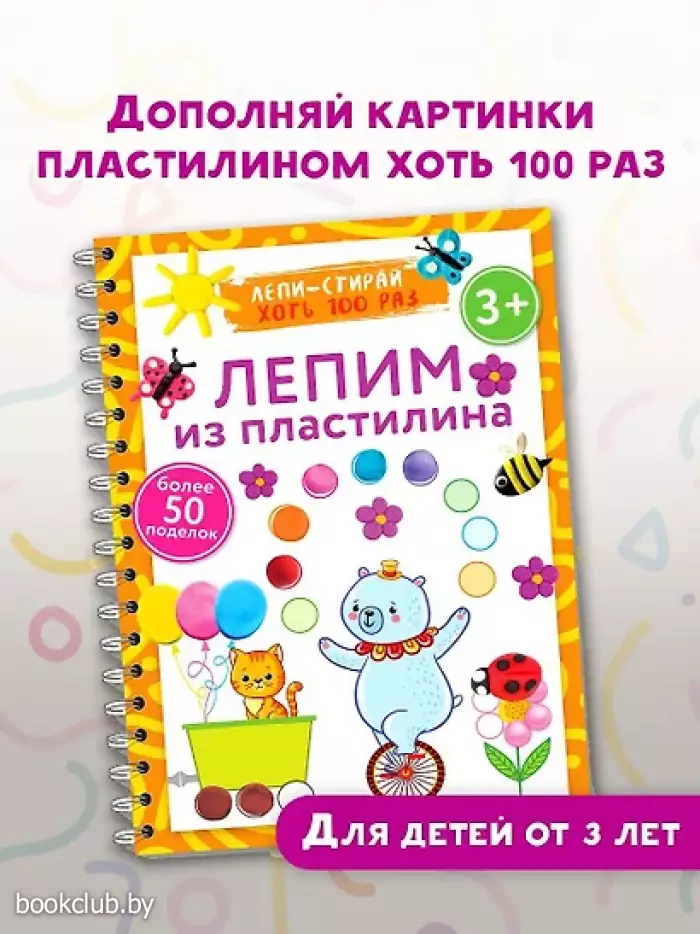 "Лепим из пластилина. Лепи–стирай. 3+" — многоразовая рабочая тетрадь большого формата для развития речи, внимания, памяти, логики, воображения и мелкой моторики. Ребёнок удивится и обрадуется — прямо на страницах можно делать аппликации из пластилина, рисовать водным маркером хоть 100 раз! Интерактивная книжка-игра обязательно понравится детям, которые обожают "своими ручками" создавать разноцветный пластилиновый мир. Малыши и взрослые получат удовольствие от общения и результата! Для дошкольного возраста.