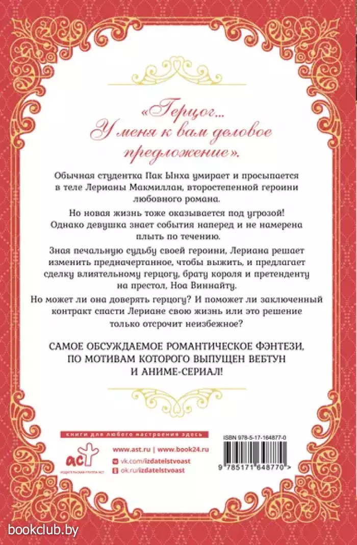 Зная печальную судьбу своей героини, Лериана решает изменить предначертанное, чтобы выжить, и предлагает сделку влиятельному герцогу, брату короля и претенденту на престол, Ноа Виннайту.