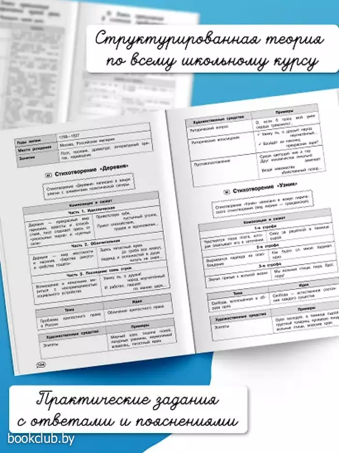 • структурированную теорию по всему школьному курсу литературы;
