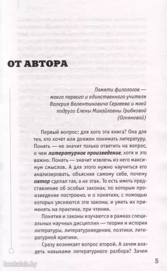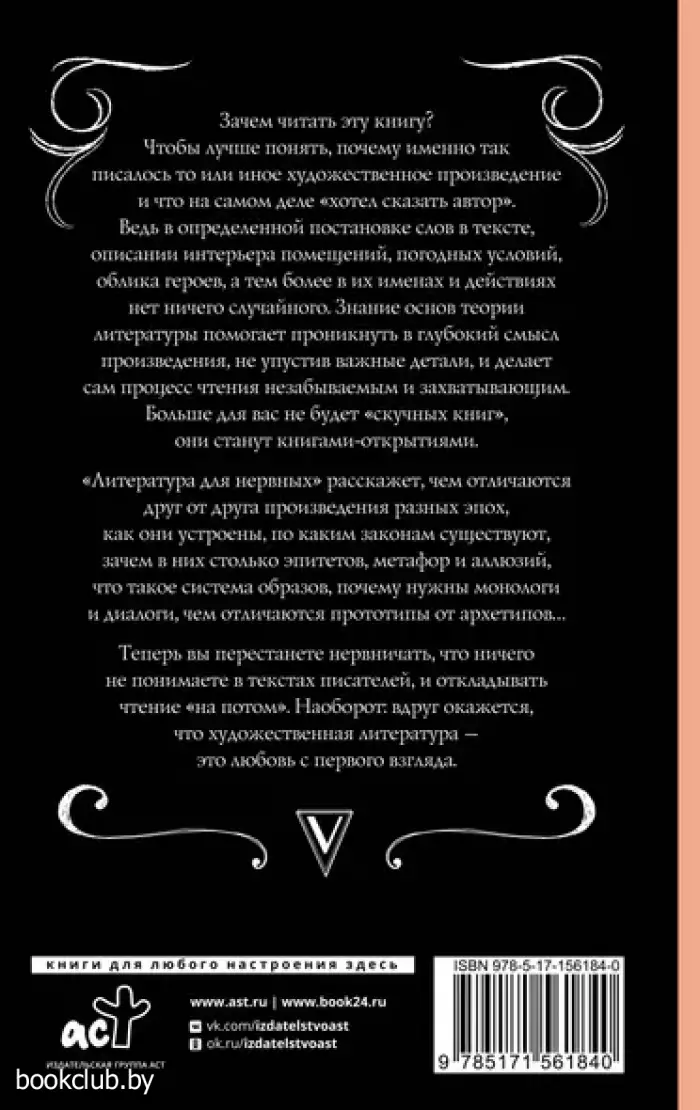 Зачем читать эту книгу? Чтобы лучше понять, почему именно так писалось то или иное художественное произведение и что на самом деле "хотел сказать автор". Ведь в определенной постановке слов в тексте, описании интерьера помещений, погодных условий, облика героев, а тем более в их именах и действиях нет ничего случайного. Знание основ теории литературы помогает проникнуть в глубокий смысл произведения, не упустив важные детали, и делает сам процесс чтения незабываемым и захватывающим. Больше для вас не будет "скучных книг", они станут книгами-открытиями.
