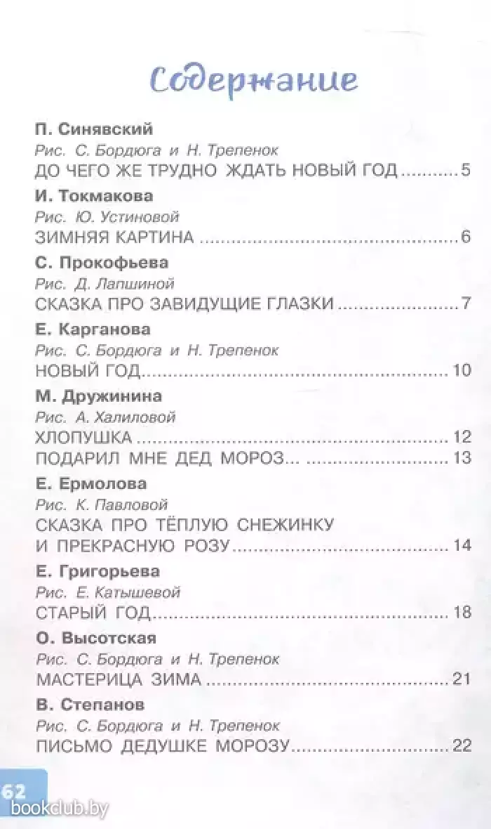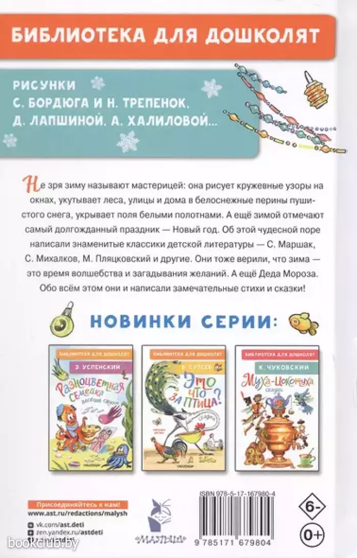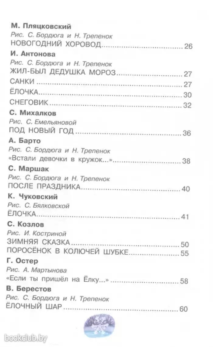 В году бывает как: звонкая весна сменяется знойным летом, а на смену ему приходит рыжая осень. И после неё наступает самое волшебное время года — зима. Авторы этого сборника — С. Маршак, С. Михалков, А. Барто, Е. Карганова, М. Дружинина и многие другие — написали для детей сказки и стихи, посвящённые зиме и чудесам, которые, как правило, случаются именно под Новый год.