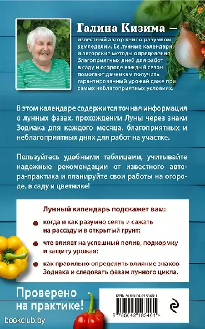 Лунный посевной календарь питерского автора Галины Кизимы ежегодно пользуется успехом у миллионов дачников, потому что методика разумного земледелия работает даже в самых неблагоприятных условиях! Благодаря полезным советам и удобным таблицам лунных фаз любой дачник сможет вовремя посеять, правильно подкормить и защитить растения. Вы узнаете, на что обратить особое внимание во время работ на участке, какие дни согласно лунным циклам наиболее благоприятны для получения обильного урожая, когда собирать урожай и как правильно его хранить. Даже начинающий садовод и огородник легко разберется в таблицах и найдет ответы на самые актуальные вопросы!