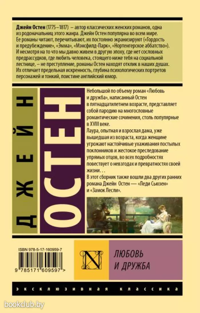Небольшой по объему роман "Любовь и дружба", написанный Остен в пятнадцатилетнем возрасте, представляет собой пародию на многословные романтические сочинения, столь популярные в XVIII веке.