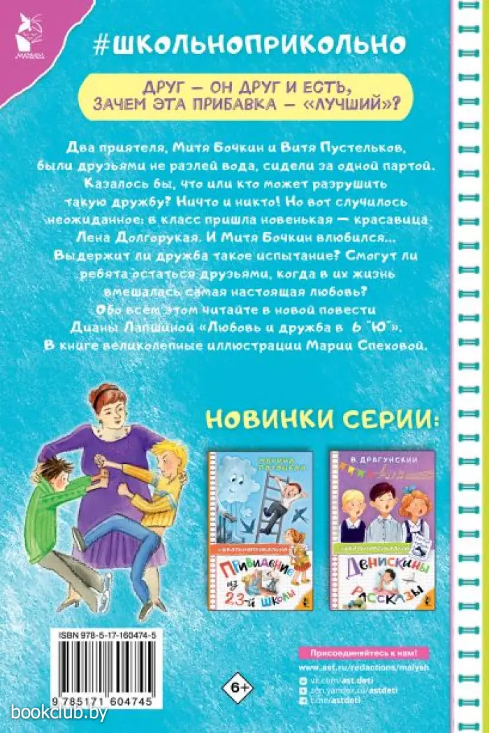 В книге "Любовь и дружба в 6 "Ю"" Диана Лапшина рассказывает о проблемах, которые знакомы каждому: как сохранить дружбу, когда твой лучший друг вдруг влюбился в новенькую? Как новенькой адаптироваться в новой школе? Как не стать предателем? И что важнее: любовь или дружба? Талантливые рисунки Марии Спеховой познакомят вас поближе с героями этой повести. Книги издательства «АСТ» из серии «Школьноприкольно» - правильный выбор и отличное приобретение. Для вашего удобства при оформлении заказа по телефону назовите код товара: 404719