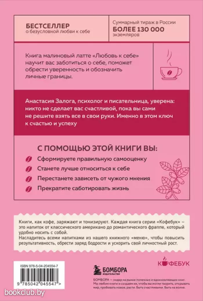 Книга клубничный латте «Любовь к себе» научит вас заботиться о себе, поможет обрести уверенность и разрешить даже самые запущенные внутренние конфликты. Анастасия Залога, психолог и писательница, уверена: никто и никогда не сможет сделать вас счастливой, пока вы сами не решите взять всё в свои руки. Именно в этом ключ к счастью и успеху.