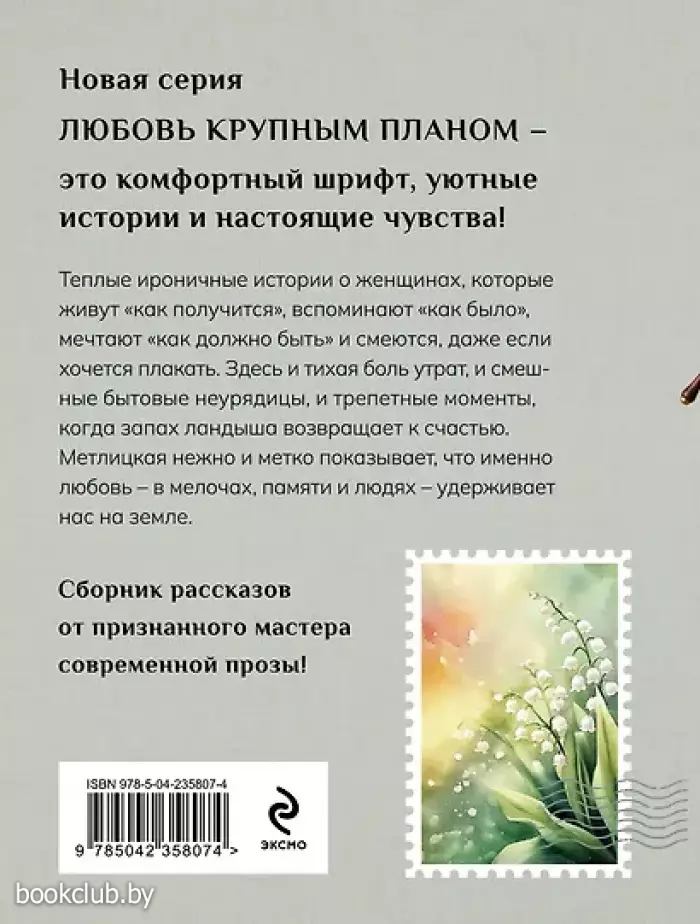 Теплые ироничные истории о женщинах, которые живут «как получится», вспоминают «как было», мечтают «как должно быть» и смеются, даже если хочется плакать. Здесь и тихая боль утрат, и смешные бытовые неурядицы, и трепетные моменты, когда запах сирени возвращает к счастью. Метлицкая нежно и метко показывает, что именно любовь — в мелочах, памяти и людях — удерживает нас на земле. Новый сборник рассказов от признанного мастера современной прозы! Крупный шрифт — для комфортного чтения по любви. «Все люди, судьбы которых — пусть на минуту, пусть на короткие мгновения, — пересеклись с нашими, не случайны! И эти истории не исключение. Они нам показывают, что именно любовь держит нас на этой земле». — Мария Метлицкая Книга от издательства «ЭКСМО», входящая в серию «Любовь крупным планом (обложка)», принесет массу положительных впечатлений от прочтения и займет достойное место в вашей библиотеке. Для вашего удобства при оформлении заказа по телефону назовите код товара: 417004