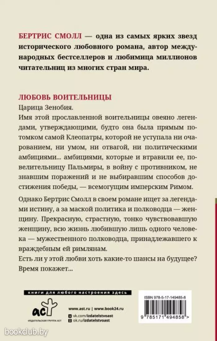 Однако Бертрис Смолл в своем романе ищет за легендами истину, а за маской политика и полководца — женщину. Прекрасную, страстную, тонко чувствовавшую женщину, всю жизнь любившую лишь одного человека — мужественного полководца, принадлежавшего к враждебным ей римлянам.
