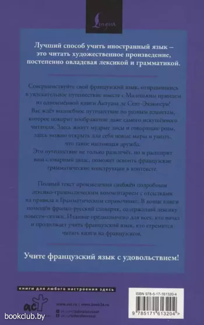 Лучший способ учить иностранный язык – это читать художественное произведение, постепенно овладевая лексикой и грамматикой. Совершенствуйте свой французский язык, отправившись в увлекательное путешествие вместе с Маленьким принцем из одноимённой книги Антуана де Сент-Экзюпери! Вас ждёт волшебное путешествие по разным планетам, которое покорит воображение даже самого искушённого читателя. Здесь живут мудрые лисы и говорящие розы, здесь можно открыть для себя новые миры и узнать, что такое настоящая дружба. Это путешествие не только развлечёт, но и расширит ваш словарный запас, а также поможет освоить грамматические конструкции в контексте. Полный текст произведения снабжён подробным лексико-грамматическим комментарием с отсылками на правила в Грамматическом справочнике. В конце книги помещён франко-русский словарик, содержащий лексику повести-сказки. Издание предназначено для всех, кто начал и продолжает учить французский язык и стремится читать французcкие книги на языке оригинала.