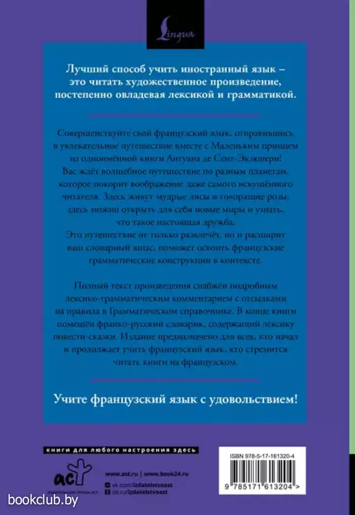 Книга «Маленький принц = Le Petit Prince: читаем в оригинале с комментарием» - станет прекрасным дополнением вашей библиотеки. Для вашего удобства при оформлении заказа по телефону назовите код товара: 407239
