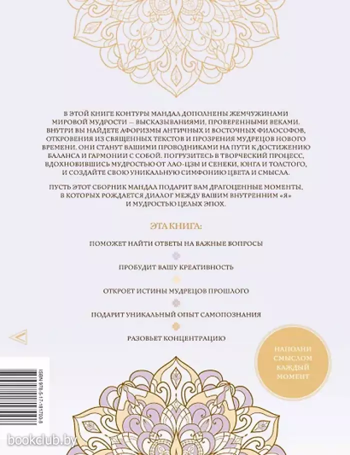 Пусть этот сборник мандал подарит вам драгоценные моменты, в которых рождается диалог между вашим внутренним "я" и мудростью целых эпох.