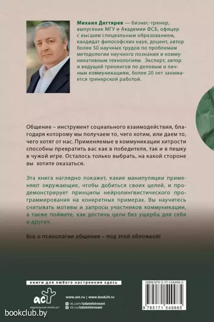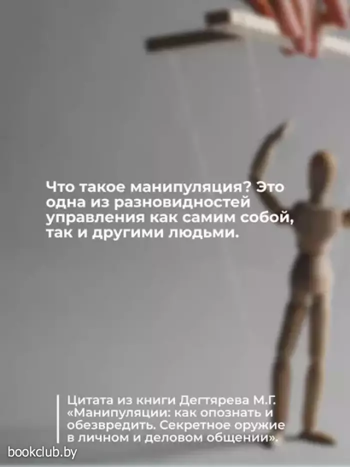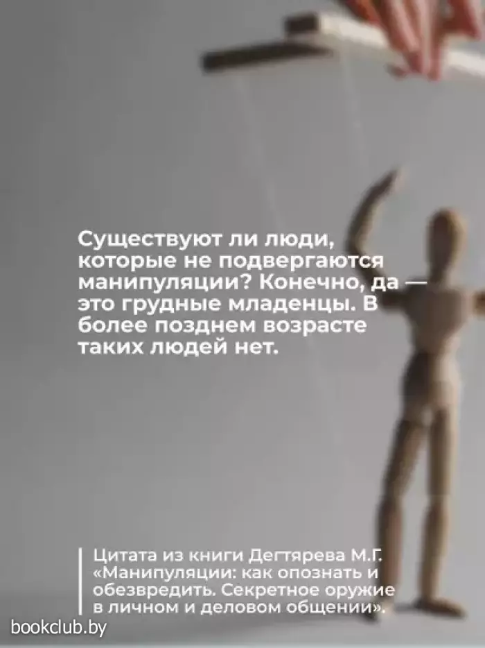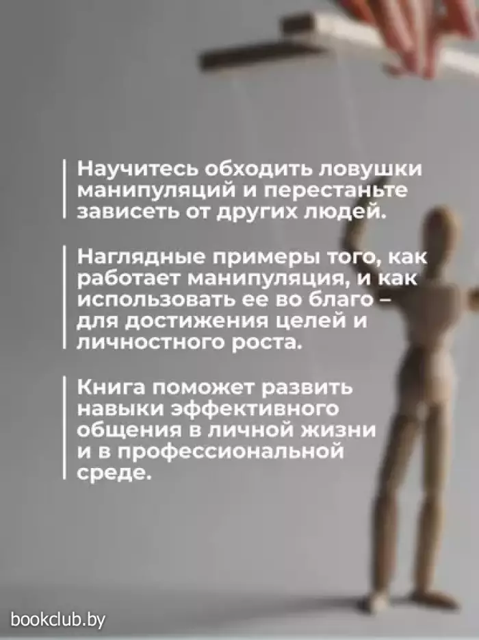 Как работает манипуляция? Какой она бывает? Почему мы манипулируем? И как превратить неосознанный механизм нашей психики в мощный инструмент достижения любых целей? Книга рассматривает манипуляцию как социальный конструкт и на простых примерах показывает, как ее распознать в повседневной жизни – как выйти из состояния жертвы, повысить свою осознанность и использовать знания о манипуляциях для развития в профессиональной и личной сферах. Манипуляция – это, прежде всего, мудрость! Вы сможете не только противостоять негативному воздействию со стороны окружающих и «считывать» их скрытые мотивы, но и научитесь грамотно выстраивать любую коммуникацию, сохранять равновесие даже в самых противоречивых ситуациях общения.