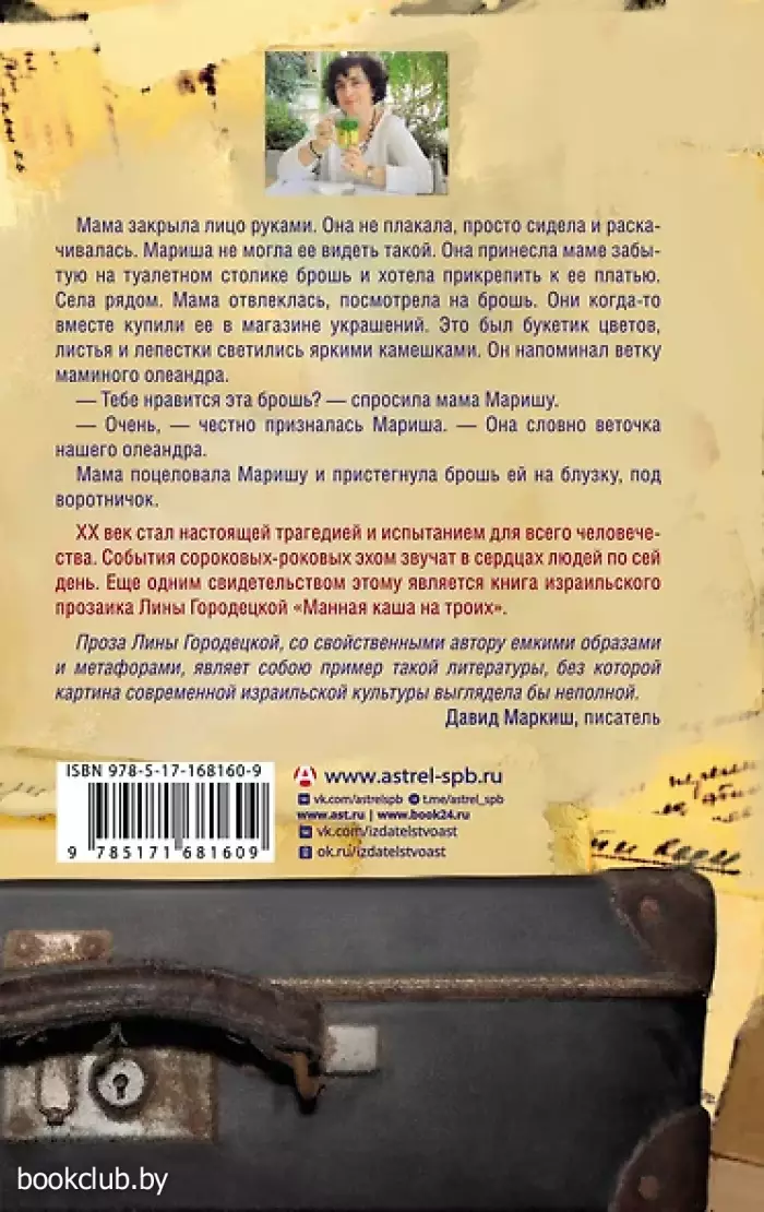 XX век стал настоящей трагедией и испытанием для всего человечества. События сороковых-роковых эхом звучат в сердцах людей по сей день. Еще одним свидетельством этому является книга израильского прозаика Лины Городецкой "Манная каша на троих".
