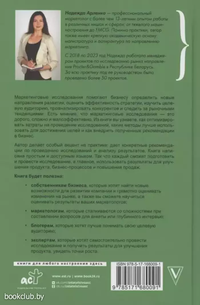 Маркетинговые исследования помогают бизнесу определить новые направления развития, оценить эффективность стратегии, изучить целевую аудиторию, проанализировать конкурентов и следить за рыночными тенденциями. Есть мнение, что маркетинговые исследования — это дорого, сложно и малоэффективно. Из книги вы узнаете, как оптимизировать затраты на проведение исследований, какие методы лучше использовать для достижения целей и как внедрить полученные рекомендации в бизнес.