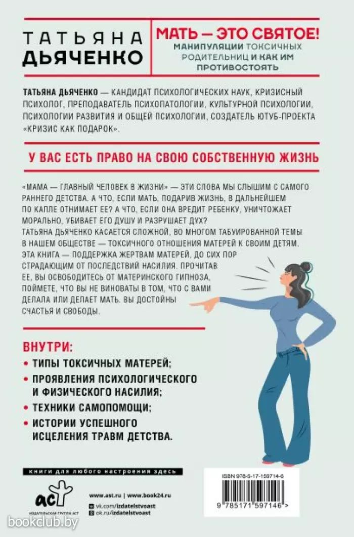 Эта книга — поддержка жертвам матерей, до сих пор страдающим от последствий насилия. Прочитав ее, вы освободитесь от материнского гипноза, поймете, что вы не виноваты в том, что с вами делала или делает мать. Вы достойны счастья и свободы.