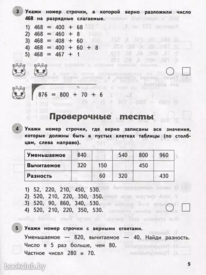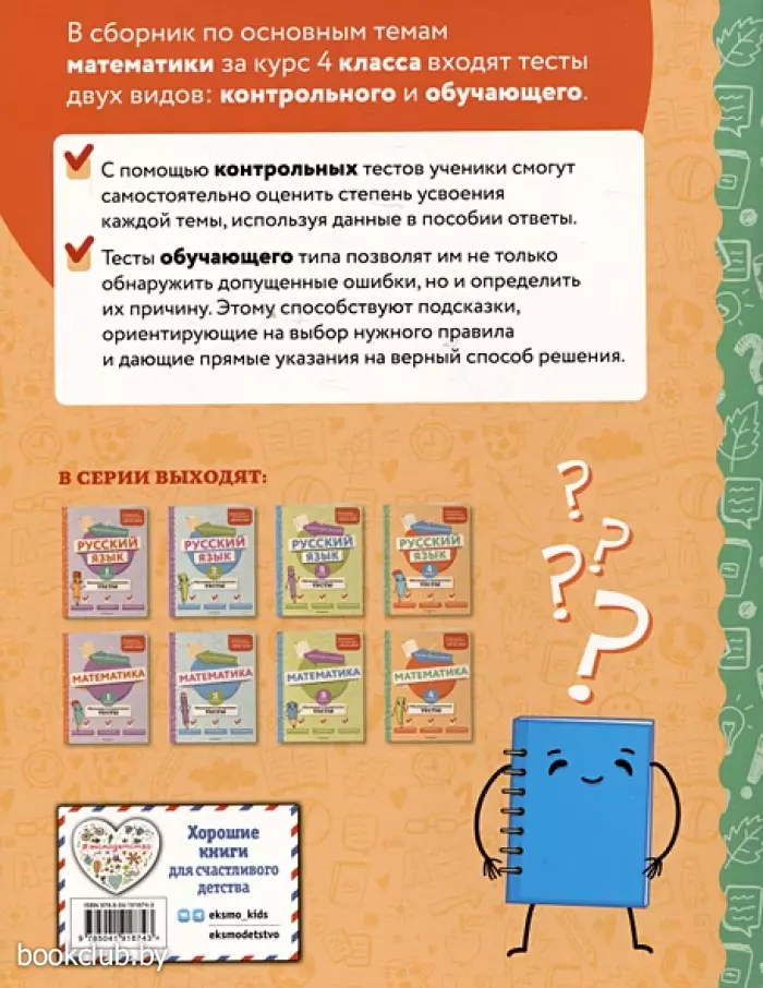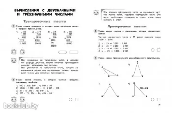 Тренажёры содержат тесты по важнейшим предметам начальной школы — математике и русскому языку. По каждой теме предлагается два вида тестов — тренировочные и проверочные. Выполняя тренировочные тесты, младшие школьники смогут не только выяснить свой уровень усвоения учебного материала, но и оперативно получить краткие и понятные разъяснения по проблемным темам. Эти подсказки ориентируют учеников на выбор нужного правила и дают прямые указания на верный способ выполнения задания. Проверочные тесты с ответами в конце книги выполняют контрольную функцию. Сборник тестов разработан с учётом всех требований ФГОС начального общего образования.