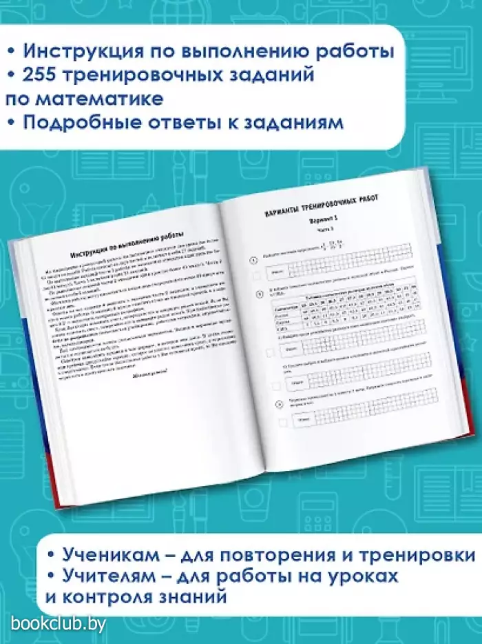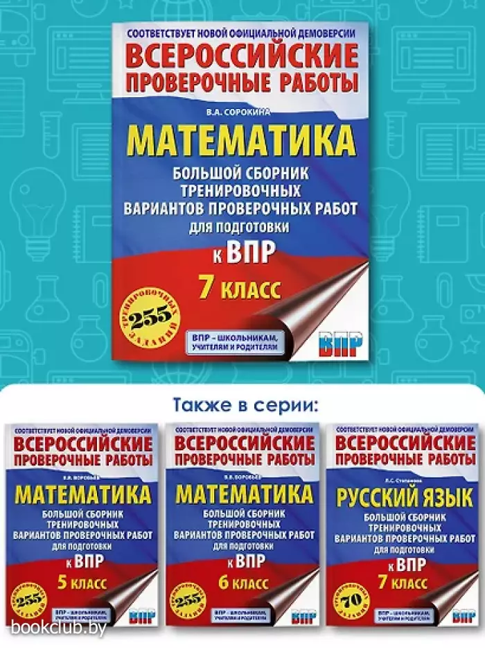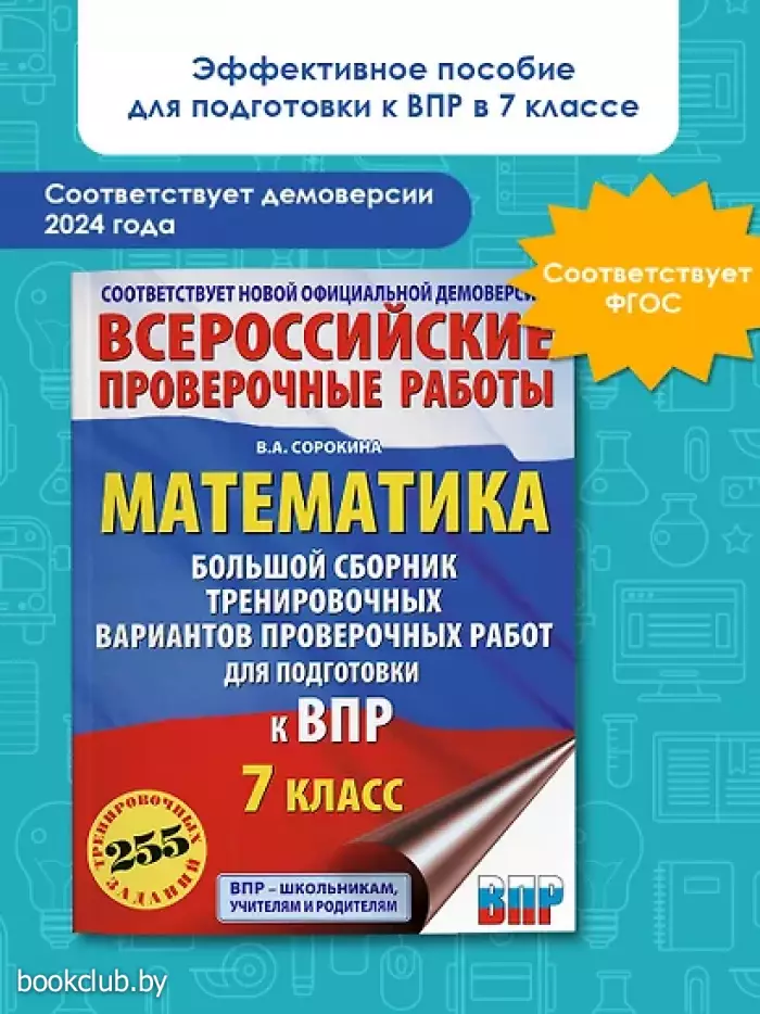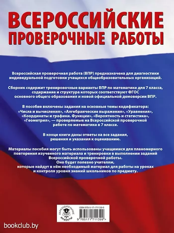 Данное пособие предназначено для учащихся 7-х классов общеобразовательных организаций. Оно позволяет в кратчайшие сроки проверить свои знания, потренироваться в выполнении заданий и тем самым успешно подготовиться к выполнению Всероссийской проверочной работы по математике по итогам обучения в 7-м классе. Пособие содержит 15 тренировочных вариантов проверочных работ. Содержание проверочной работы соответствует Федеральному государственному образовательному стандарту основного общего образования. Каждый вариант составлен в полном соответствии с демонстрационным вариантом, представленном на информационном портале по Всероссийским проверочным работам: www.fioco.ru. В конце книги даны ответы на все задания, решения и критерии оценивания. Материалы пособия будут полезны учителям, которые найдут в нём материал для работы на уроках и контроля уровня знаний школьников по предмету.
