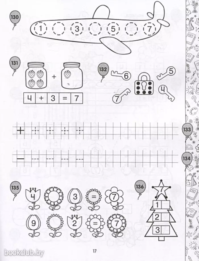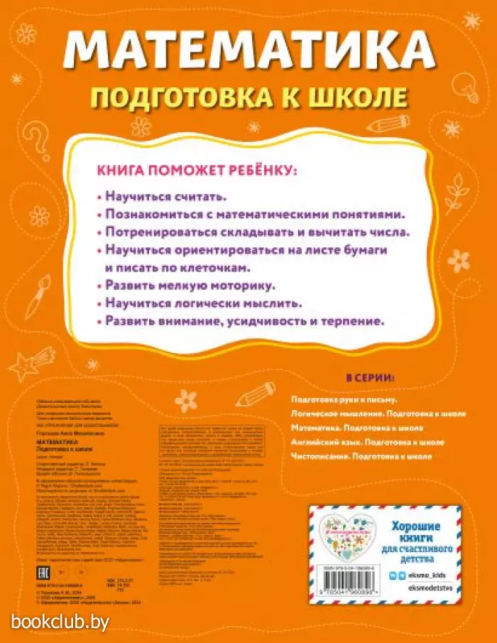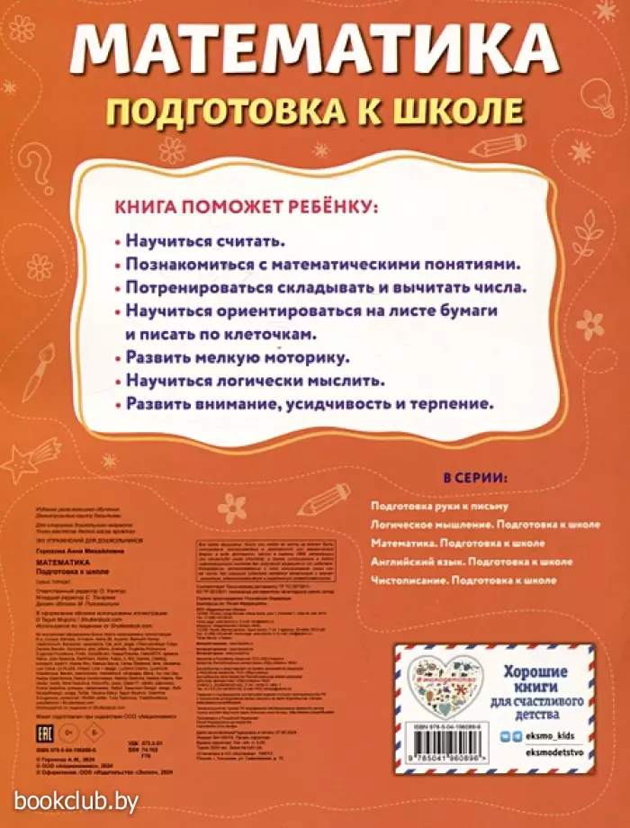 Эта книга для детей от 5 лет поможет дошкольнику научиться считать до 20 и познакомиться с математическими понятиями, которые необходимо знать будущему первокласснику. В рабочей тетради более 365 упражнений по математике, рассчитанных на каждый день года. Это способствует равномерному распределению учебной нагрузки и формированию положительного отношения ребёнка к обучению в школе. Дошкольник потренируется писать цифры, выполнять арифметические действия сравнения, сложения и вычитания и решать задачи. Он научится ориентироваться на листе бумаги, логически мыслить, станет внимательным, аккуратным, самостоятельным и приобретёт другие важные навыки, необходимые при обучении в школе.