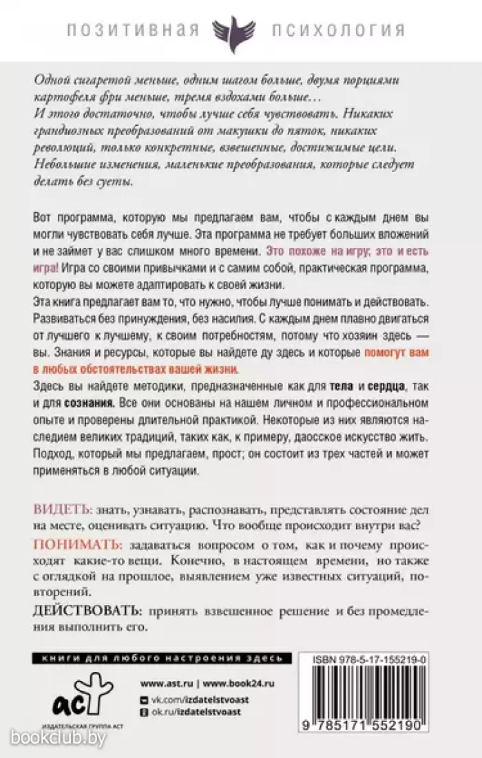 Книга от издательства «АСТ», входящая в серию «Позитивная психология. Изабель Филльоза и др.», принесет массу положительных впечатлений от прочтения и займет достойное место в вашей библиотеке. Для вашего удобства при оформлении заказа по телефону назовите код товара: 407552
