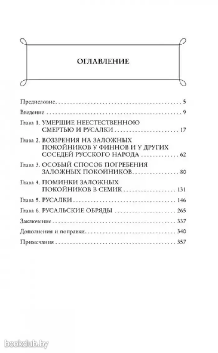 В масштабном исследовании Зеленин фокусируется на конкретном пласте культуры — на представлениях о «заложных покойниках», то есть людях, умерших не своей, чаще всего насильственной смертью. Русалка же считалась «заложной женщиной», покойницей, нечистью, по своей сути и поведению отличающейся от «заложного мужчины».