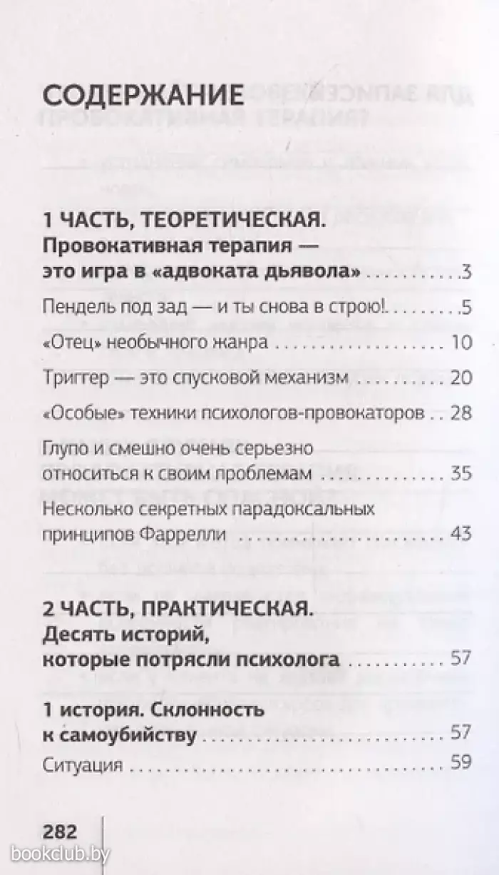 Вызов, эмоциональная встряска, "волшебный пендель" - или наглая манипуляция, сомнительный метод, нарушение профессиональной этики – провокативная психология вызывает множество споров и полярных реакций. Но что бы ни говорили ее противники – она работает. Работает зачастую там, где бессильны другие методы. В этой книге вы на ярких примерах познакомитесь со случаями из практики провокативных психологов. Каждый кейс сопровождается подробным объяснением того, в чем именно заключалась провокация, почему она сработала и как можно использовать этот метод для борьбы с нашими скрытыми страхами и проблемами.