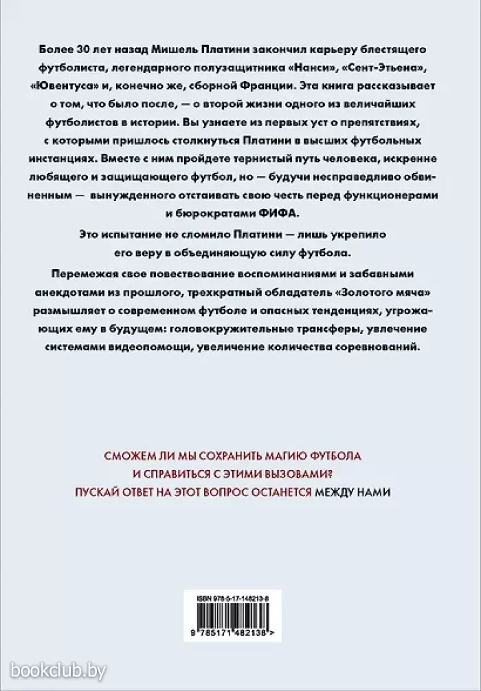 Платини делится опытом, который получил как футболист, как тренер и как спортивный чиновник. Он рассказывает о том, что помогло ему не сдаться и не потеряться в жизни.