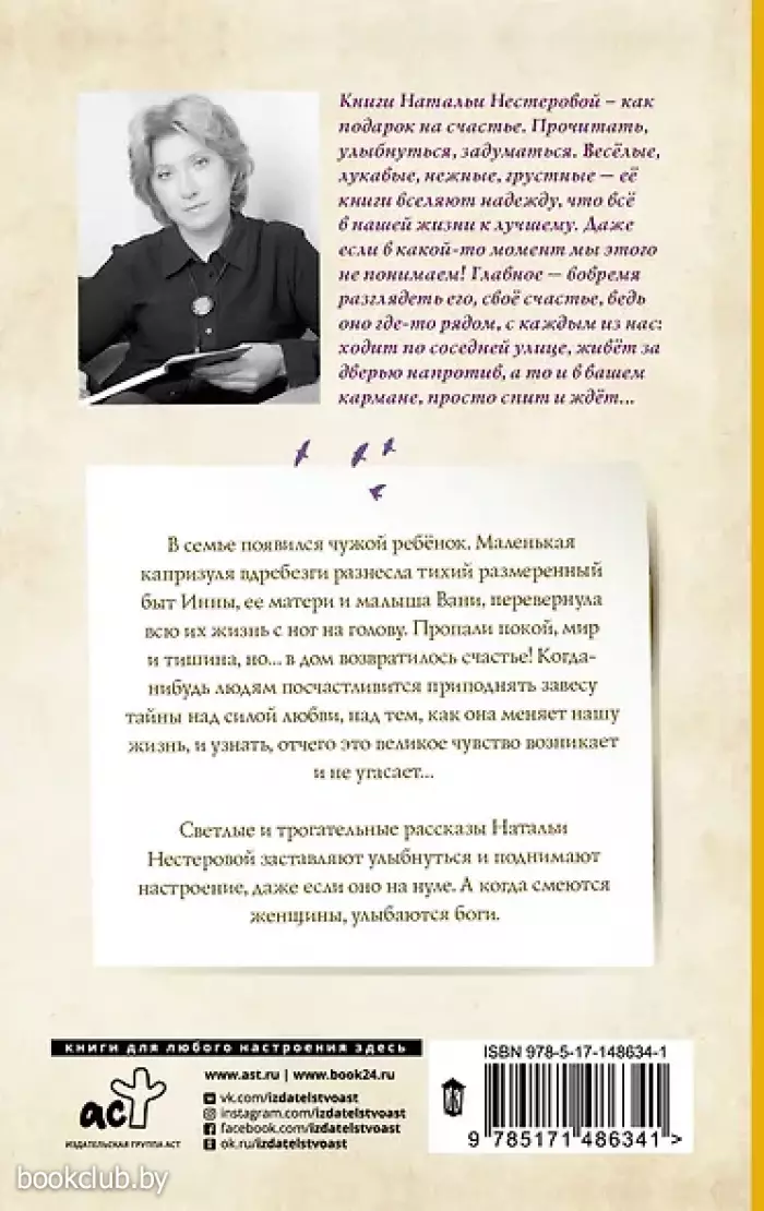 Светлые и трогательные рассказы Натальи Нестеровой заставляют улыбнуться и поднимают настроение, даже если оно на нуле. А когда смеются женщины, улыбаются боги.