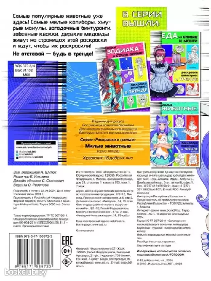 Книги издательства «АСТ» из серии «Раскраски в тренде» - отличное приобретение для вас и ваших близких. Для вашего удобства при оформлении заказа по телефону назовите код товара: 409134