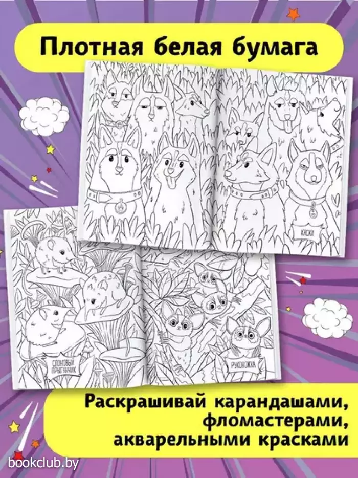 Самые милые капибары, хмурые манулы, загадочные квокки, дерзкие медоеды живут на страницах этой раскраски и ждут, чтобы их раскрасили!