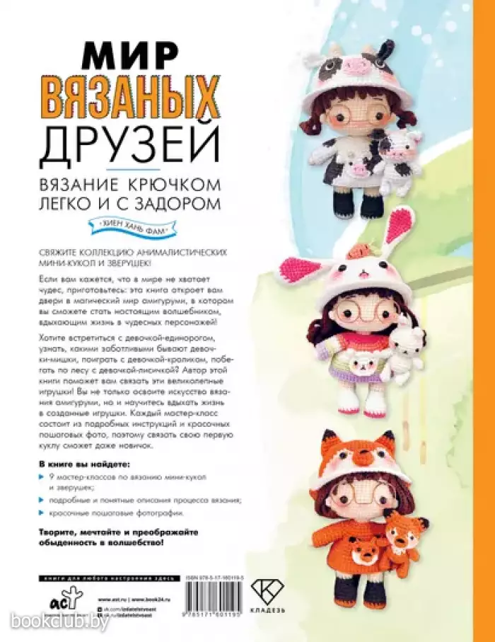 Хотите встретиться с девочкой-единорогом, узнать, какими заботливыми бывают девочки-мишки, или отправиться играть с девочкой-кроликом? Эта красочная книга станет вашим незаменимым помощником в освоении искусства амигуруми. В ней собрано 9 полноценных мастер-классов по вязанию анималистических мини-кукол и зверушек крючком. Все этапы вязания подробно описаны и проиллюстрированы пошаговыми фотографиями.