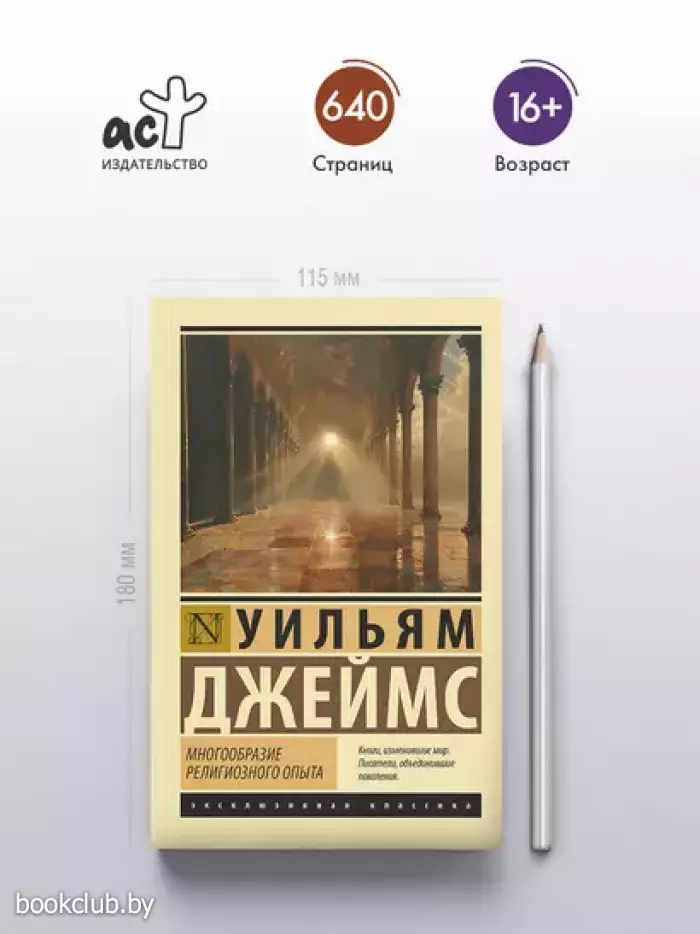 Жизнь американского философа Уильяма Джеймса (1842—1910), ведущего представителя прагматизма и функционализма, которого принято называть «отцом современной психологии», не была богата событиями, не считая того, что он дважды удостаивался чести возглавить Американскую психологическую ассоциацию, основал в Гарварде, где бессменно преподавал, первую в США лабораторию прикладной психологии, а на склоне лет увлекся спиритизмом. Но зато после смерти великого ученого начались приключения его теорий, которые то опровергали и низвергали, то вновь возносили на пьедестал, то благополучно забывали — чтобы вернуться к ним десятилетия спустя. «Многообразие религиозного опыта» — один из наиболее известных трудов Джеймса, в котором он сосредоточивается на психологической проблематике религиозных и мистических переживаний, резко разграничивает психологическую природу философского опыта и его философское значение и указывает на необходимость отличать практическую ценность какого-либо религиозного феномена от вопроса о происхождении этого феномена, отвергает идею о превосходстве науки над религией, настаивая на их раздельной и не подлежащей сравнению ценности, и создает настоящую классификацию наиболее существенных черт религиозной жизни — от приоритета у верующего духовного мира над видимым до его уверенности в спасении.