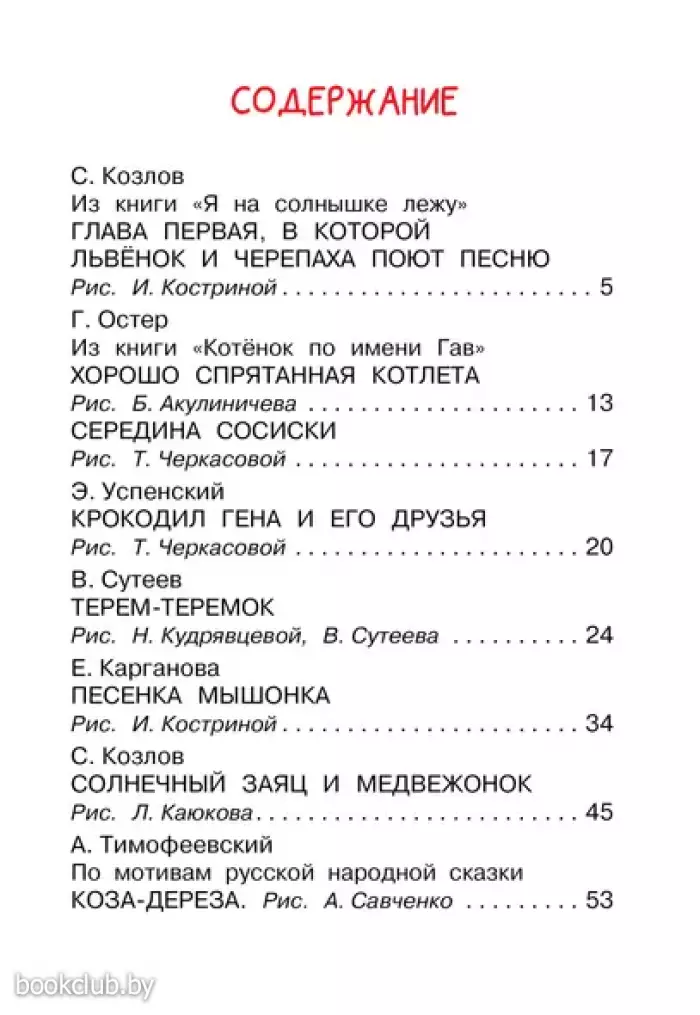 В эту книгу вошли сказки, по которым были сняты знаменитые мультфильмы про котёнка по имени Гав, про крокодила Гену и Чебурашку, про Львёнка и Черепаху, которые пели песню, и про многих других! Коротенькие сказки подойдут для чтения с самыми непоседливыми малышами, а иллюстрации известных художников прекрасно дополняют каждую сказочную историю. Как здорово, что любимых героев можно увидеть и на экране, и на страницах книги!