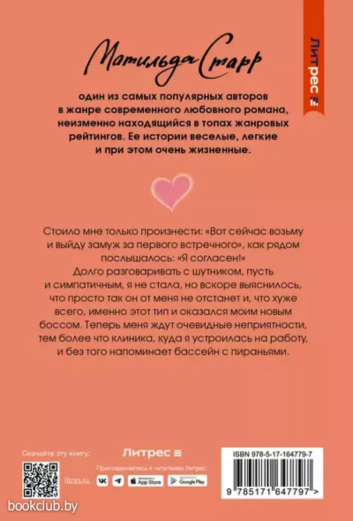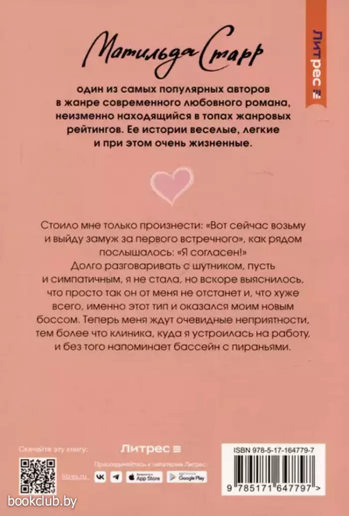 Стоило мне только произнести: «Вот сейчас возьму и выйду замуж за первого встречного», как рядом послышалось: «Я согласен!» Долго разговаривать с шутником, пусть и симпатичным, я не стала, но вскоре выяснилось, что просто так он от меня не отстанет и, что хуже всего, именно этот тип и оказался моим новым боссом. Теперь меня ждут очевидные неприятности, тем более что клиника, куда я устроилась на работу, и без того напоминает бассейн с пираньями.