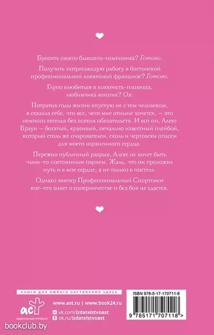 Бросить своего бывшего-изменника? Готово. Получить потрясающую работу в бостонской профессиональной хоккейной франшизе? Готово. Глупо влюбиться в хоккеиста-плохиша, любимчика многих? Ох. Потратив годы жизни впустую не с тем человеком, я сказала себе, что все, чего мне отныне хочется, — это немного веселья без всяких обязательств. И вот он, Алекс Браун — богатый, красивый, печально известный плейбой, который столь же очарователен, как и чертовски опасен для моего израненного сердца. Пережив публичный разрыв, Алекс не хочет быть чьим-то постоянным парнем. Жаль, что он проложил путь и в мое сердце, а не только в постель. Однако мистер Профессиональный Спортсмен кое-что знает о соперничестве и без боя не сдастся.