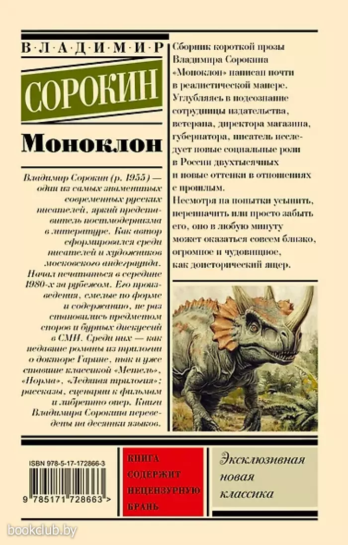 Сборник короткой прозы Владимира Сорокина “Моноклон” написан почти в реалистической манере. События: расстрел в супермаркете, зачистка в коттеджном поселке, нападение на ветерана госбезопасности под звуки марша юных патрио-тов на Ленинском проспекте — происходят в привычных де-корациях и едва выходят за рамки возможного.
