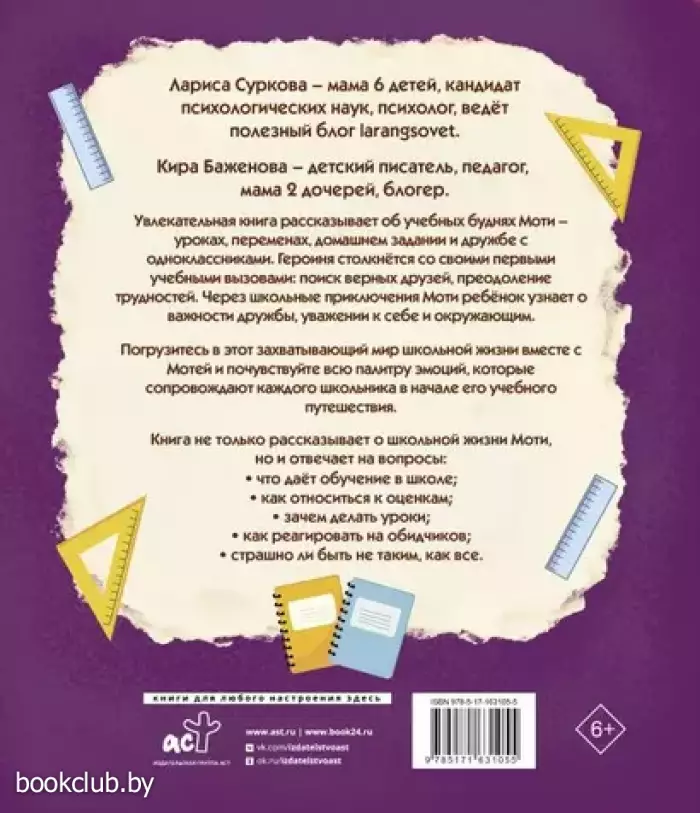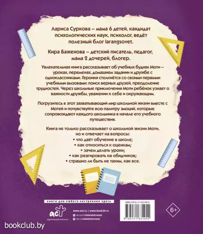 Увлекательная книга рассказывает об учебных буднях девочки Моти − уроках, переменах, домашнем задании и дружбе с одноклассниками. Героиня столкнётся со своими первыми учебными вызовами: поиск верных друзей, преодоление трудностей. Через школьные приключения Моти ребёнок узнает о важности дружбы, уважении к себе и окружающим.