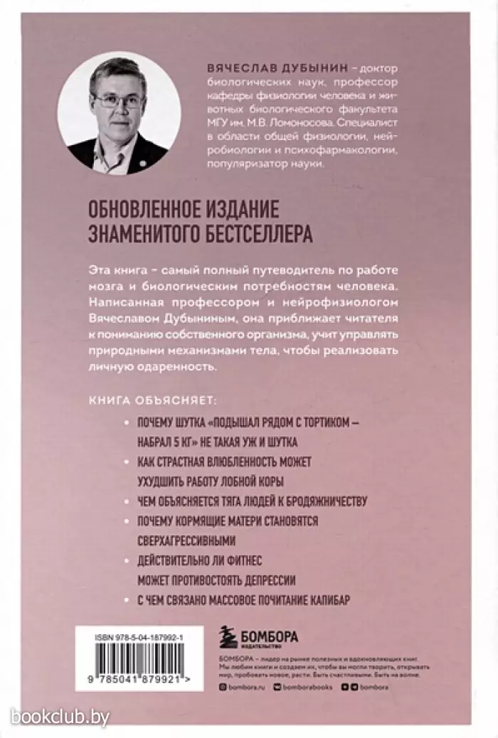 Эта книга — самый полный путеводитель по работе мозга и биологическим потребностям человека. Написанная профессором, нейрофизиологом Вячеславом Дубыниным, она приближает читателя к пониманию собственного организма, учит управлять природными механизмами тела, чтобы реализовать личную одаренность.