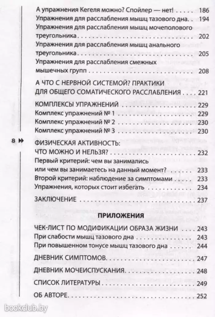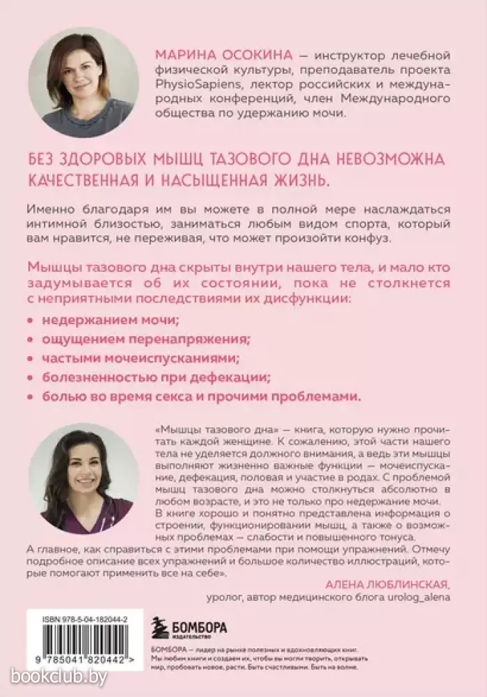 В книге хорошо и понятно представлена информация о строении, функционировании мышц, а также о возможных проблемах — слабости и повышенного тонуса. А главное, как справиться с этими проблемами при помощи упражнений. Отмечу подробное описание всех упражнений и большое количество иллюстраций, которые помогают применить все на себе». — Алена Люблинская, уролог, автор медицинского блога urolog_alena