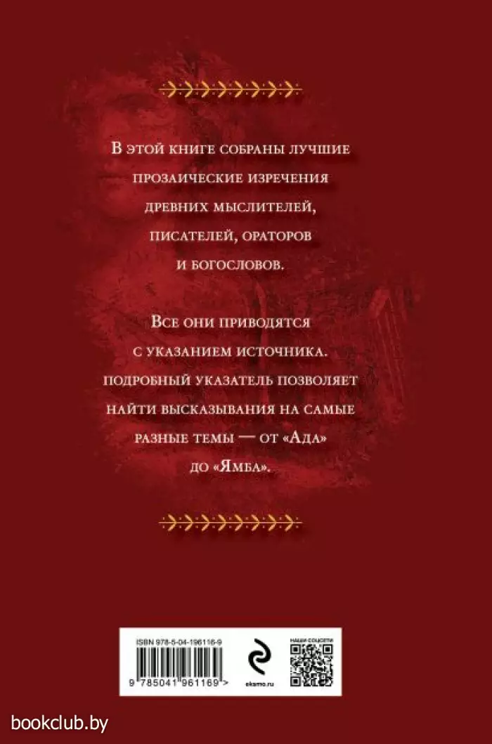 В этой книге собраны лучшие прозаические изречения древних мыслителей, писателей, ораторов и богословов. Все они приводятся с указанием источника. подробный указатель позволяет найти высказывания на самые разные темы — от «Ада» до «Ямба».