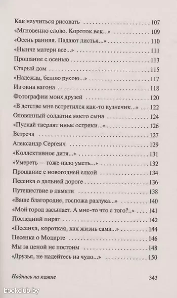 В данное издание вошли стихи разных лет, в том числе такие известные, как "Песенка о юнкерах", "Ваше благородие, госпожа разлука…", "Арбатский дворик" и "Бери шинель, пошли домой".