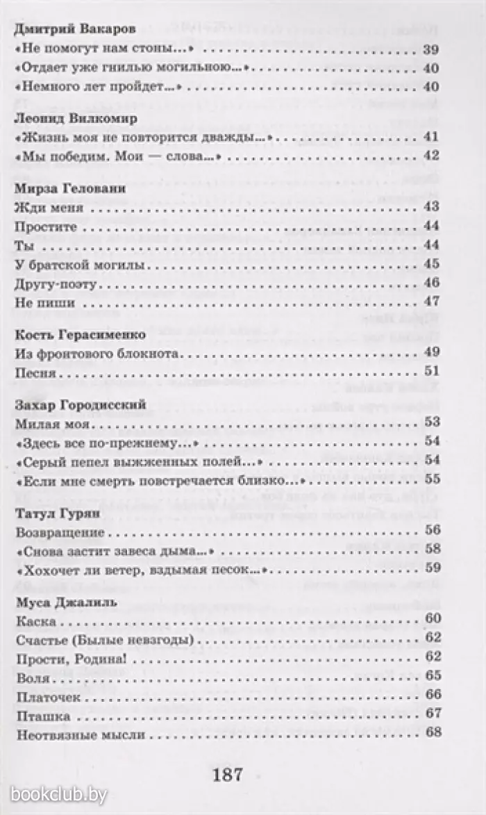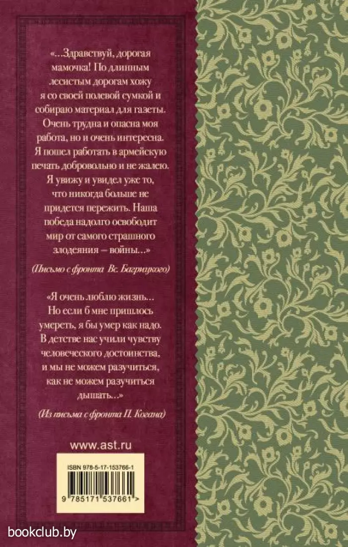 Мы никогда не забудем подвиг поэта Мусы Джалиля, замученного в фашистской тюрьме. Ему посмертно присвоено звание Героя Советского Союза. Борис Котов, Герой Советского Союза, погиб при форсировании Днепра. Под Ленинградом навеки остался Всеволод Багрицкий, под Смоленском – Борис Богатков, Николай Майоров, под Сталинградом – Михаил Кульчицкий. Геройски пали Павел Коган, Георгий Суворов, Дмитрий Вакаров…
