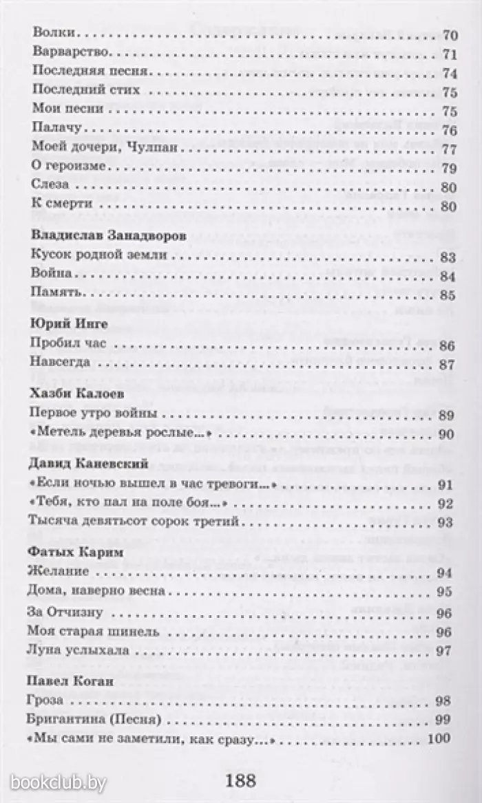 В сборник вошли стихотворения советских поэтов, павших на Великой Отечественной войне. Авторы: Джек Алтаузен, Александр Артемов, Всеволод Багрицкий, Борис Богатков, Дмитрий Вакаров, Леонид Вилкомир, Мирза Геловании, Кость Герасименко, Татул Гурян, Муса Джалиль, Владислав Занадворов, Юрий Инге, Хазби Калоев, Давид Каневский, Фатых Карим, Павел Коган, Борис Костров, Борис Котов, Михаил Кульчицкий, Борис Лапин, Алексей Лебедев, Всеволод Лобода, Николай Майоров, Варвара Наумова, Евгений Нежинцев, Самуил Росин, Георгий Суворов, Микола Сурначев, Иосиф Уткин, Владимир Чугунов, Микола Шпак