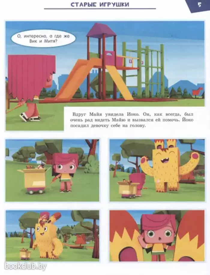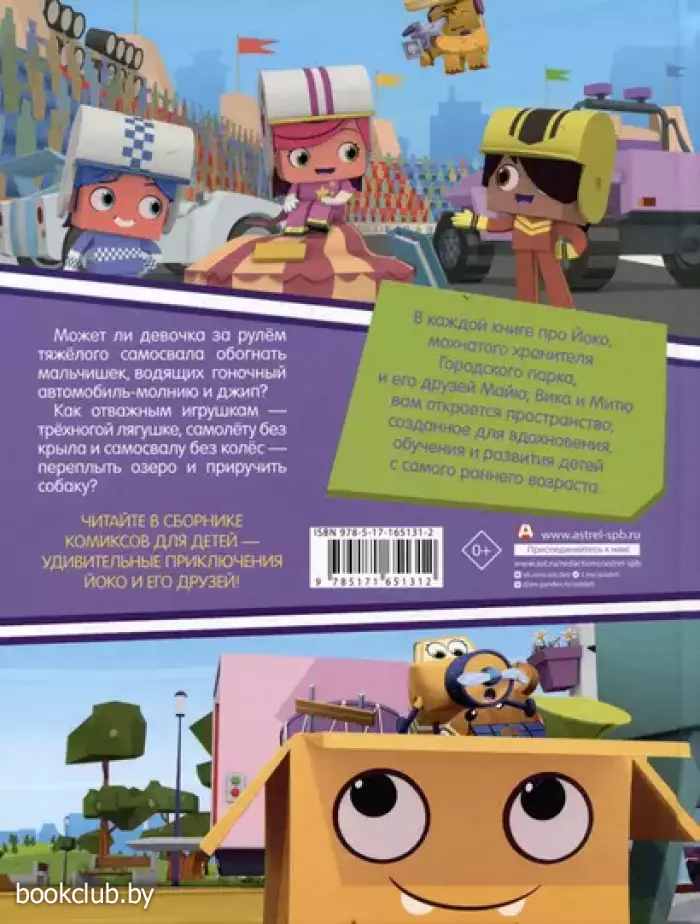 Как отважным игрушкам — трёхногой лягушке, самолёту без крыла и самосвалу без колёс — переплыть озеро и приручить собаку? Может ли девочка за рулём тяжёлого самосвала обогнать мальчишек, водящих гоночный автомобиль-молнию и джип? В каждой книге про Йоко, мохнатого хранителя городского парка, и про его друзей — Майю, Вика и Митю — вам откроется пространство, созданное для вдохновения, обучения и развития детей с самого раннего возраста.
